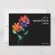 This horizontal RSVP card from the Petals & Pride collection invites guests to respond online with elegance and ease. Featuring radiant rainbow florals across a sleek black background, the design blends vibrant color with modern convenience. The translucent petals in pink, orange, yellow, green, and blue symbolize unity and joy, making it perfect for LGBTQ+ celebrations. Clear text prompts guests to RSVP digitally by the specified date, streamlining responses while keeping the tone festive and inclusive. Matching items available to complete your suite with pride and style.