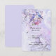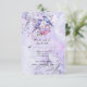 Hermoso tono de púrpura claro 5x7 para guardar la fecha de la boda, con una pareja de pájaros azules entre lilas púrpuras y rosadas