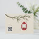 Un boda al aire libre r.s.v.p. con un tema de naturaleza salvaje/camping con el ilustracion de una lámpara de aceite roja colgando de una rama de árbol eververde.