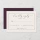 This elegant wedding RSVP card features a minimalist and sophisticated design with an understated color palette of soft, muted tones. The typography is refined and cursive, adding a touch of timeless charm to the overall look. Perfect for couples aiming for a classic yet modern aesthetic, this card exudes grace and simplicity, making it ideal for capturing your special day's elegance. With customizable text areas, you can personalize it effortlessly while maintaining its polished appearance.