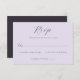 This elegant wedding RSVP card features a soft lavender background with sophisticated black script typography, creating an air of timeless elegance. The minimalist design includes space for personalization and clear checkboxes to indicate attendance preferences, making it both functional and stylish. Perfect for couples aiming for a classic yet modern aesthetic, this card captures the joyous anticipation of a special celebration while maintaining a refined tone. Its simple yet graceful layout ensures that your guests feel welcomed and valued as they respond to your invitation.