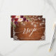 Madera rústica, escritura moderna de caligrafía, tarjeta de respuesta de encaje floral de Borgoña Marsala con rosas de Borgoña y rosa. Luces de cuerda en frasco de albañil.