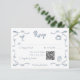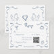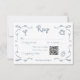 ¡Di "lo hago" con un toque de encanto! Nuestra caprichosa tarjeta de respuesta boda de estilo doodle dibujada a mano con un código QR establece el tono perfecto para su gran día. Con un fondo blanco y polvorientos bocetos azules de lo esencial boda —pasteles, anillos, palomas y corazones— esta invitación rebosa de amor y personalidad. El divertido tipo de letra escrito a mano añade un sentimiento casual y sincero, haciéndolo tan único como su historia de amor. Que las celebraciones comiencen con una invitación tan alegre y romántica como tú. Creado por Simply Farmhouse Press.