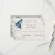 Esta tarjeta RSVP de boda floral geométrica presenta una mariposa azul dramática. Está situado sobre un elegante arreglo floral que está muy bien entrelazado con un hexágono gris oscuro. El RSVP está decorado en tonos grises, beige, azul y rosa.
