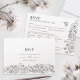 Boda de arte de la línea botánica de fleur de lis con RSVP y opciones de comida. Hermosa línea de arte con flores, flores de primavera, tendriles y mariposas. Un sencillo diseño mono personalizado con sus propias iniciales de monograma y detalles de la opción de comida. Ideal para mantener los costos bajos cuando se planifica una cena. Las invitaciones coincidentes y otros elementos coincidentes y las opciones de color están disponibles y se pueden crear bajo petición. © Dibujo y diseño original de Sarah Trett para www.mylittleedenweddings.com en Zazzle.