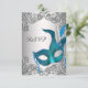 Tarjeta De Confirmación De Asistencia Máscara plateada azul turquesa Fiesta de disfraces