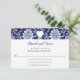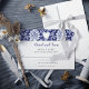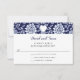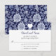A wedding response card with a charming wildflower meadow border in indigo blue, highlighted by a white heart and elegant script.