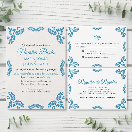 Talavera Turquoise Minimalist Spanish Wedding CardDiseñado por Salwa Z.