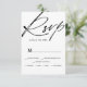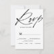 Elegante boda rsvp de moda de caligrafía blanca negra con escritura de firma.