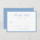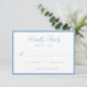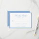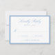 This wedding RSVP card features elegant light blue calligraphy script at the top, paired with classic serif lettering and space for your desired wedding response date. A soft blue border frames the design, creating an airy and refined look while maintaining a clean, structured presentation. The balanced layout offers a sophisticated way for guests to reply, making this RSVP card well-suited for summer weddings, coastal celebrations, and classic events. Personalize the wording to create a response card that feels fresh and thoughtfully designed.