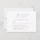This elegant modern wedding RSVP enclosure card features mauve text on a white background. The title "RSVP" appears in simple modern handwriting script, with customizable text below in sans serif font. The reverse side is solid mauve.