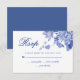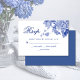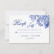 Tarjeta De Confirmación De Asistencia Moderna Floral de estilo retro azul y chino blanco