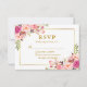 Moderna y elegante acuarela Floral color rosa Rubor Gold Wedding Tarjeta RSVP - Marco dorado con rosas rosas rosas y vegetación