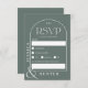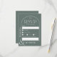 Tarjeta rsvp de tono verde de tono moderno del arco del boho boda. Un diseño fresco, sencillo y minimalista, con un ambiente bohemio desértico. Perfecto para bodas al aire libre.