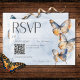 Captura el encanto de la naturaleza con nuestra encantadora tarjeta de respuesta boda de mariposa con un código QR. Las mariposas acuarelas pintadas a mano dan vida a un cautivador despliegue de color rico. Los bonitos tonos beige, marrón cálido, óxido de terracota, azul verde azulado y crema crean una sensación de elegancia acogedora. Un suave y polvoriento lavabo de color azul acuático proporciona el marco perfecto. Este diseño encarna perfectamente la esencia de la naturaleza, invitando a sus huéspedes a celebrar su historia de amor en medio de su belleza. Creado por Simply Farmhouse Press.