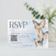 Tarjeta De Confirmación De Asistencia Moderno color de agua azul y rojizo mariposas QR C