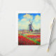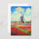 Tarjeta con la pintura de Claude Monet sobre la flor y el molino de viento. Hermosos y coloridos campos de tulipanes rojos, rosados y amarillos junto a un molino de viento y casa en Holanda. Un gran regalo de Monet para los amantes del impresionismo y el arte francés.