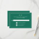 Tarjeta De Confirmación De Asistencia Monograma verde esmeralda simple matrimonio elegan
