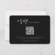 Moody Tropics, boda QR código tarjeta rsvp. Título gráfico de guión de edugie "rsvp" y soporte de fotografía de hojas de palma tropical oscura.