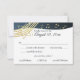 Música en la tarjeta de respuesta de Air Bar Mitzvah en azul y oro. Versión más clara de nuestro original. Personalizar con su propio texto según sea necesario.