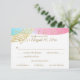 Música en la tarjeta de respuesta de Air Bar Mitzvah en rosa, azul y oro. Personalizar con su propio texto según sea necesario.