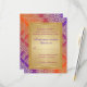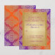 Esta vibrante tarjeta de respuesta de boda inspirada en el Sari del este de la India en tonos de púrpura y naranja tiene un patrón damasco con un aspecto dorado y un borde de brillo FAUX dorado (IMPRIMIDO, no real) que coincide con la invitación de boda que se muestra a continuación. Los ricos colores la hacen perfecta para una boda étnica, boda musulmana o boda del este de la India. ****POR FAVOR TOME NOTA de que ninguno de los elementos de esta invitación está elevado o grabado. Todo está impreso plano. Esta invitación sería perfecta para una ceremonia de boda india, hindú, sánscrita o musulmana en primavera, verano, otoño o invierno, fiesta de compromiso, aniversario u otra fiesta de boda. Se muestra aquí en papel básico. Si desea un papel de mayor gramaje, sugiero el papel metálico hielo o champán, que le daría un hermoso brillo opalescente. NO sugiero usar el papel metálico dorado, ya que es un oro muy oscuro y broncíneo que alterará realmente los colores del diseño. El papel delicado es MUY delgado. TAMBIÉN, si cambia el tamaño de la invitación, o si cambia las fuentes, o el tamaño de la fuente, parte del diseño y/o texto puede cortarse. Todo se imprimirá