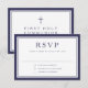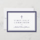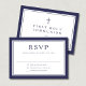 Navy Blue Religious Cross Boy First Communion RSVP Card.