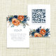 Navy Burnt Orange Florals Wedding RSVP. Rustic florals and modern simplistic text with a QR code for your guests to scan to visit your wedding website. Change the sample url to your website url for your code to be automatically generated.