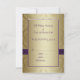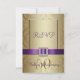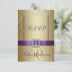 Celebre su aniversario de bodas con estilo con este elegante conjunto de Tarjeta de Respuesta para Invitación de Aniversario de Bodas de 50 años con efecto damasco dorado, para el cual esta es la tarjeta de respuesta. Estas invitaciones elegantes son una mezcla maravillosa de tradicional y moderno. Los gráficos por computadora dan a esta tarjeta un aspecto 3D, aunque la cinta de satén púrpura, el broche de oro y diamantes y el número 50 metálico dorado son solo una imagen fotográfica impresa en la tarjeta plana. Por favor, ordene en papel blanco liso como se muestra, para que todos los detalles del diseño resalten. En la parte posterior, agregue el texto de respuesta para su fiesta de aniversario de 50 años. Esta tarjeta NO viene con ningún adorno. Todo lo que ve está impreso en una superficie de tarjeta plana. ¿Le gustaría un color de cinta diferente o ayuda con el diseño de su conjunto de