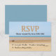 Tarjeta de confirmación de boda en la playa, la parte delantera de la tarjeta presenta una fotografía de una playa de arena bajo un cielo azul, mientras que la parte trasera es de un suave color azul marino. Por favor, personalice esta tarjeta editando la fecha de respuesta en la plantilla de personalización en línea antes de realizar el pedido, para que los invitados sepan cuándo necesita las respuestas. ¡Una tarjeta encantadora para enviar y recibir! Los artículos de boda que coinciden con la misma fotografía de la playa de arena se pueden encontrar en la colección "Suite de Invitación de Playa de Arena y Cielo Azul".