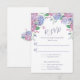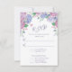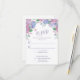 Tarjeta RSVP de Boda Floral Pastel Hydrangeas diseñada con flores Hydrangeas de verano en tonos morados, azules y rosas, sobre un fondo blanco. El reverso está diseñado con un Hydrangeas Bouquet sobre un fondo blanco. Para personalizar, simplemente inserte sus detalles en nuestra plantilla sencilla, reemplazando el texto de ejemplo. Asegúrese de ver la colección completa de Bodas de Pastel Hydrangeas para tarjetas y accesorios a juego.