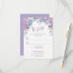 Esta tarjeta RSVP de Boda está diseñada con hermosas Hydrangeas en tonos lavanda, azul y rosa, sobre un fondo blanco. El reverso está diseñado con un Hydrangeas Bouquet sobre un fondo de lavanda. Para personalizar, simplemente inserte sus detalles en nuestra plantilla sencilla, reemplazando el texto de ejemplo.