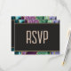 This elegant "RSVP Card" design showcases stunning agate slices in rich peacock tones—deep teal, sapphire blue, and emerald green—layered with natural stone-like textures for a sense of depth and luxury. Each slice is accented with a delicate gold trim, evoking the shimmer of gilded edges and adding a touch of opulence. The overall aesthetic blends the organic beauty of geodes with the sophistication of jewel tones, creating a modern yet timeless design. Perfect for a refined celebration.