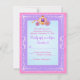 This romantic pink, purple and sky blue fantasy fairytale wedding rsvp card has a pink castle floating in the sky on billowy soft white clouds, while an ornate carriage and two white stallion horses wait to whisk the happy couple away. There is a pale pink scrolled flourish on purple border that sits atop a FAUX textured pink background that matches the wedding invitation shown below. Perfect for the Cinderella love story fit for a King and Queen or Prince and Princess. ***PLEASE NOTE there are no raised elements on this invitation. Everything is printed flat. It is shown here on basic paper, but for an added bit of elegance, I suggest the metallic ice paper if your budget allows, as it has a lovely subtle opalescence to it that really sets the invitation off. I would NOT use any of the colored papers (champagne, gold, silver, felt, speckled) as they will ALL alter the colors of the design. The silver metallic paper is much darker than what it appears like online. The linen paper will add a texture of thin lines that you may not want, and it is a light weight paper. The basic or recycled papers are a cheaper alternative if you are on a tighter budget. ***PLEASE NOTE that if you change the fonts or size of the fonts, it may alter how your invitation prints. It will print the way you see it on your monitor, so if you have alignment issues, or sizing problems, please contact me for help. I will not see your invitation once you order it, and Zazzle will NOT edit anything (typos, alignment, etc.). If you require assistance or would like any other matching items, please email your request to niteowlstudio@gmail.com.