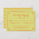 Una simple y elegante caligrafía colorida tarjeta retro de boda rsvp. Como ven, tiene un fondo verde moderno vintage con escritura a mano naranja dentro de un marco dibujado a mano. Y pinstripes pintadas a mano rosa y naranja en la parte posterior. Puede editarlo haciendo clic en el botón de personalización.