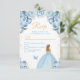 Esta elegante y glamorosa tarjeta Rsvp cuenta con una hermosa princesa con el pelo rubio en un vestido azul claro de bola. El texto combina el guión manuscrito y las fuentes sans serif modernas para un aspecto elegante y sofisticado. Los arreglos florales, mariposa y confitis dorada crean la mezcla perfecta entre rústico y moda. Perfecto para una dulce fiesta de 16 fiestas o cumpleaños. Gráficos de www.etsy.com/uk/shop/SunflowerDayLove