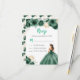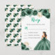 Esta tarjeta de gabinete rsvp cuenta con una hermosa princesa en un vestido de bola verde oscuro con arreglos florales. Es perfecto para una fiesta de cumpleaños, dulce dieciséis o quinceañera.