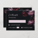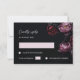 This romantic dark moody Wedding Response Card features 3D purple and dark red peony flowers on a black background. Matching invitation available.