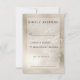 Esta invitación a la boda es parte de las tarjetas Champagne Gold Purpurina Wedding Invitation Suite creadas por Simply Farmhouse Press. El fondo del purpurina de oro de champán suave incluye un área de texto blanco transparente y texto de carbón vegetal. Es sencillo y elegante, con un aspecto moderno.