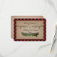 Un boda r.s.v.p. con un ilustracion de dos ramas de árboles de color verde y una canoa verde. El fondo es rojo y negro plateado. Personalice el texto.