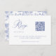 Patrón floral Regency Blue Chinoiserie, tarjeta rsvp de boda con código QR.