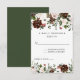 Sus detalles están dentro de un encabezado superior e inferior de flores acuarelas con colores inspirados en la naturaleza: rojo indio, marfil, rosa pálido y verde oscuro del bosque. Personaliza con tu propia información. La parte trasera de la tarjeta es verde oscuro. Perfecto para una boda de otoño o invierno.