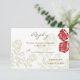 Invitación responder tarjeta plana con rosas rojos y dorados.
