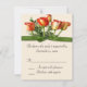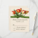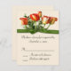 Tarjeta de respuesta con ramo de ramo de rosa naranja y amarillo, cinta verde falsa y arco. Selección de acabados y colores de papel. Las tarjetas vienen con sobres. com