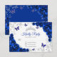 Royal blue silver floral Quinceanera RSVP reply card. Features, script font, silver butterflies, watercolor roses and tiara. Perfect for an elegant princess style glam celebration. Personalize with your own details.