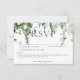 Que la naturaleza prepare el escenario para tu historia de amor con nuestra minimalista tarjeta de respuesta boda con detalles, pero sin opciones de cena. Una delicada gota de acuarela, con un toque de hiedra, helechos y salvia, adorna la parte superior del diseño, añadiendo un toque de elegancia ecológica. Este sencillo pero sofisticado detalle se encuentra en un fondo blanco nítido, asegurando que la información de su boda ocupe el centro de la escena. La parte trasera de la suite tiene el mismo espacio y está limpia y limpia, repitiendo la estética minimalista. Este diseño atemporal es perfecto para una pareja con conciencia ecológica que busca un toque de belleza por su día especial.
