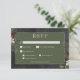 Presentamos nuestra encantadora tarjeta de respuesta nupcial de invierno con opciones de cena, donde la elegancia atemporal se encuentra con la belleza de la temporada. El rico fondo negro, artísticamente angustiado con acentos blancos suaves, le da un tono cautivador a su día especial. En la zona de texto verde sabio oscuro, los detalles bodas brillarán, rodeados por un delicado marco crema que le aporta un toque de refinamiento. Aprovecha el espíritu del invierno con un impresionante marco de vegetación exuberante, adornado con bayas rojas ricas, mistletoe con sus delicadas bayas blancas y el encanto eterno del pino verde. Este diseño de estilo invernal inspirado en la tierra capta la esencia de la temporada e invita a sus huéspedes a celebrar su amor en un entorno que exubera gracia natural y encanto festivo. Con este diseño, seguro que prepararás el escenario para una celebración llena de amor y alegría. Acepte la magia del invierno y deje que su boda sea un reflejo de la belleza que trae esta temporada. Esta tarjeta forma parte de la suite boda Rustic Winter Berries & Pine Black, creada por Simply Farmhouse Press.