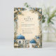 Inspired by the iconic white architecture and blue domes of Santorini, this elegant wedding design features hand-painted Mediterranean florals and soft botanical accents. The airy composition, muted coastal blues, and refined greenery create a timeless destination wedding aesthetic that feels romantic, elevated, and effortlessly European. Perfect for couples planning a Greek island, coastal, or Mediterranean-inspired celebration with a classic yet artistic touch.