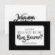 Cada novio necesita un portador de anillos en su boda. Esta tarjeta de propuesta es una excelente manera de pedirle a un sobrino, al hijo de un amigo o a cualquier niño especial en tu vida que sea parte del séquito nupcial. Cuenta con un diseño en blanco y negro con letras en negrita y un espacio para escribir un mensaje especial.