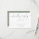 Una simple tarjeta de respuesta con elegante escritura en verde menta con tus detalles en tipografía chic. Diseñada por Thisisnotme©